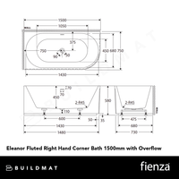 Fienza Eleanor Fluted Right Hand Acrylic Corner Bath 1500mm with Overflow Gloss White