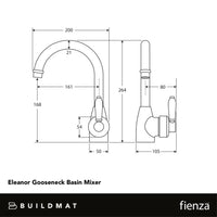 Fienza Eleanor Gooseneck Basin Mixer Brushed Nickel with Ceramic Handle Lead Free