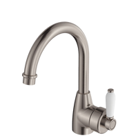 Features: Stunning modern vintage style Swivel function PVD brushed nickel finish White ceramic handle Made from lead free brass Quality European cartridge, 40mm Suitable for mains pressure, max. 500kpa PEX... Read more