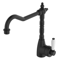 Features: Stunning modern vintage style Designed for kitchen & above counter basins Swivel function Electroplated matte black finish White ceramic handle Made from solid brass Quality European cartridge, 40mm Suitable... Read more