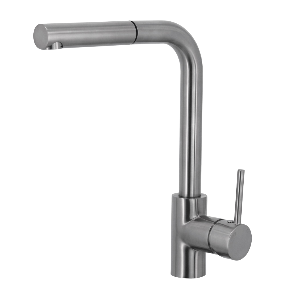 Features: Pull-out nozzle on 1 metre hose (hose length can be reduced) Swivel function PVD brushed nickel finish Made from solid brass 35mm cartridge Suitable for mains pressure, max. 500kpa... Read more