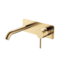 Fienza Kaya Basin Wall Mixer Set Rectangular Plate 160mm Outlet Urban Brass