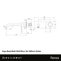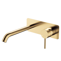 Fienza Kaya Basin Wall Mixer Set Rectangular Plate 200mm Outlet Urban Brass