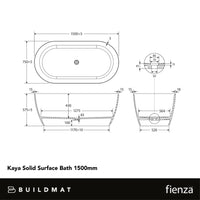 Fienza Kaya Solid Surface Bath 1500mm Matte White