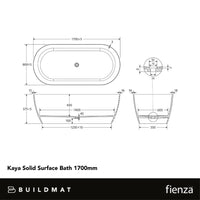 Fienza Kaya Solid Surface Bath 1700mm Matte White