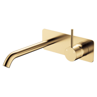 Fienza Kaya Up Basin Wall Mixer Set Rectangular Plate 200mm Outlet Urban Brass
