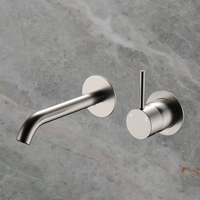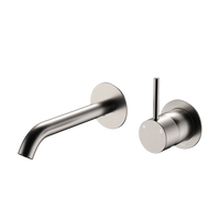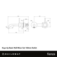 Fienza Kaya Up Basin Wall Mixer Set Round Plates 160mm Outlet Brushed Nickel