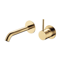 Fienza Kaya Up Basin Wall Mixer Set Round Plates 160mm Outlet Urban Brass
