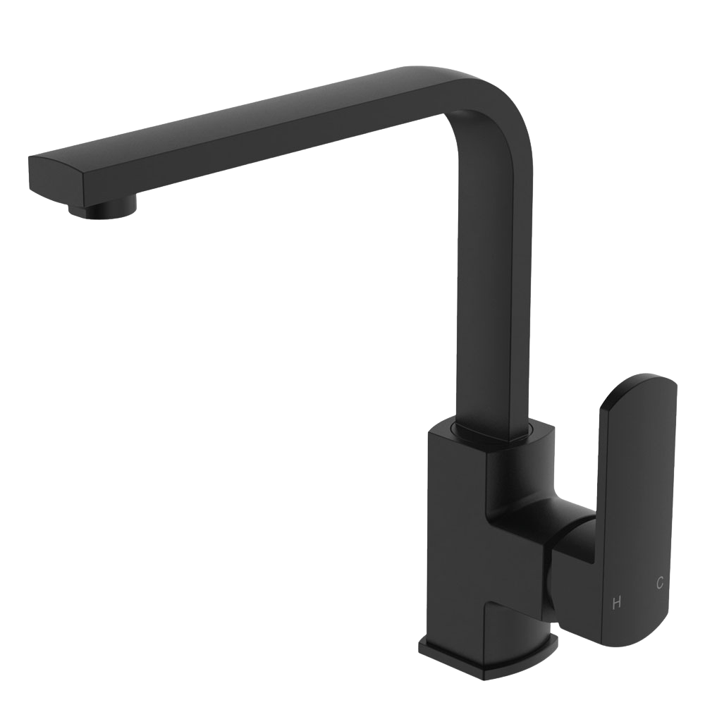 Features: Swivel function Sleek, soft-square design Electroplated matte black finish Made from solid brass Quality European cartridge, 35mm Suitable for mains pressure, max. 500kpa PEX split-resistant flexible hosesWELS 5 Star... Read more