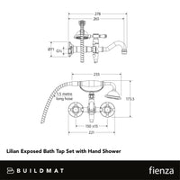 Fienza Lillian Exposed Bath Tap Set with Hand Shower Brushed Nickel