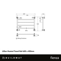 Fienza Lillian Heated Towel Rail 600 x 450mm Brushed Nickel