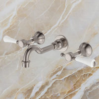 Fienza Lillian Lever Basin/Bath Wall Set Brushed Nickel with Ceramic White Handle