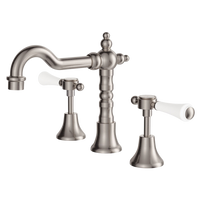 Fienza Lillian Lever Basin Set Brushed Nickel with Ceramic White Handle