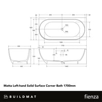 Fienza Matta Left Hand Solid Surface Corner Bath 1700mm with Overflow Matte White