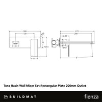 Fienza Tono Basin Wall Mixer Set Rectangular Plate 200mm Outlet Brushed Nickel