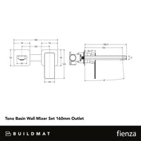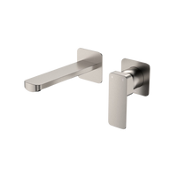 Fienza Tono Basin Wall Mixer Set Square Plates 160mm Outlet Brushed Nickel