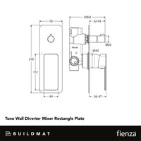 Fienza Tono Wall Diverter Mixer Rectangular Plate Brushed Nickel