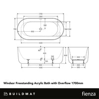 Fienza Windsor Freestanding Acrylic Bath with Overflow 1700mm Matte Black
