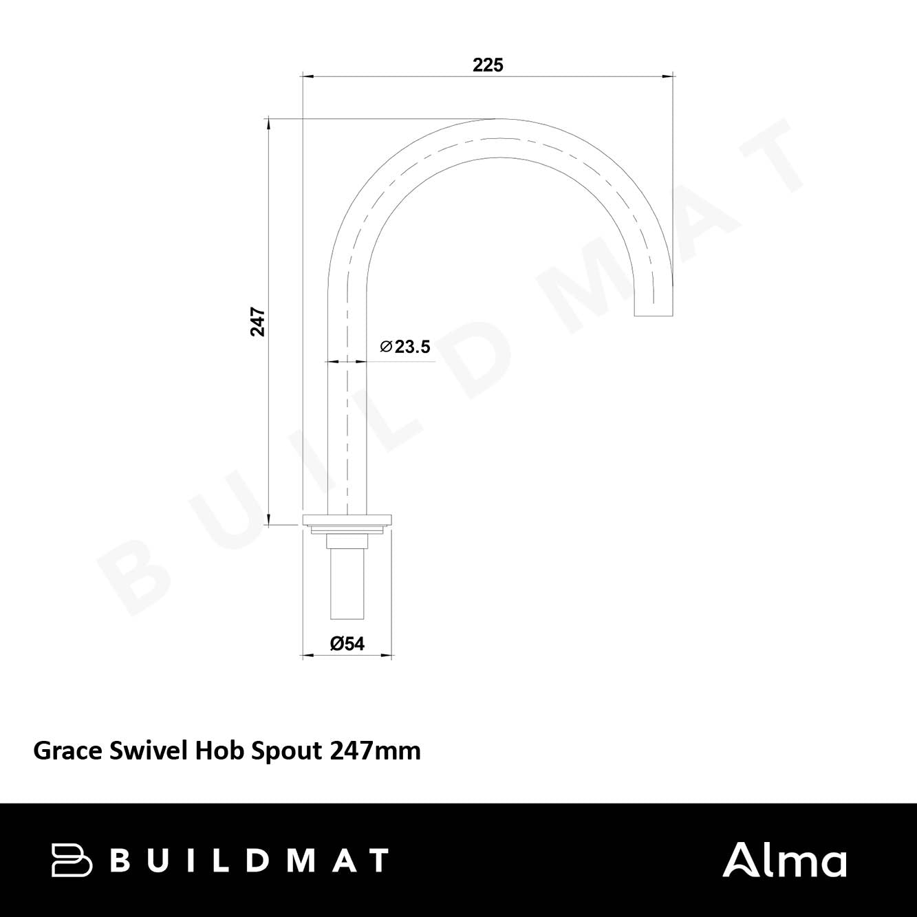Grace Swivel Hob Spout 247mm Matte Black