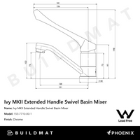 Phoenix Ivy MKII Extended Handle Swivel Basin Mixer Lead Free 6 Star Chrome