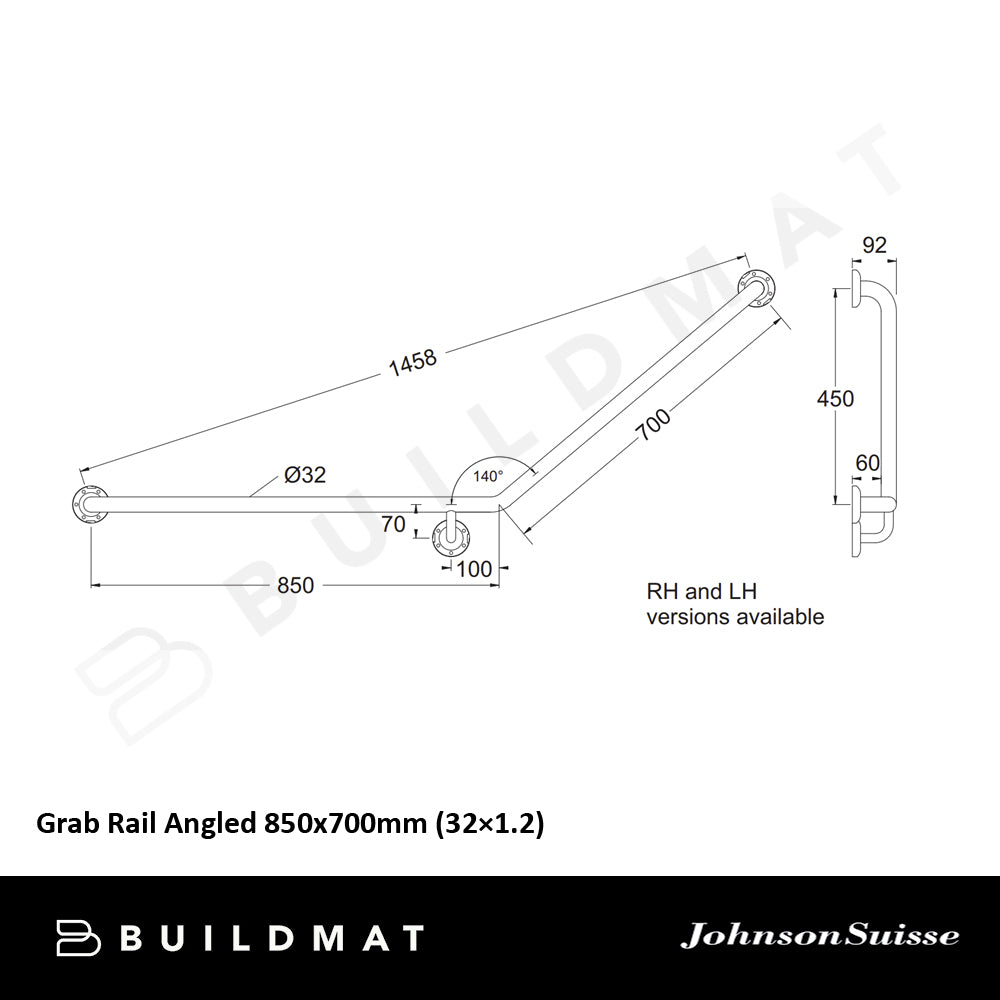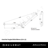 Johnson Suisse Grab Rail Angled 850x700mm Right Hand Side Stainless Steel