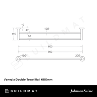 Johnson Suisse Venezia Double Towel Rail 600mm Brushed Nickel II