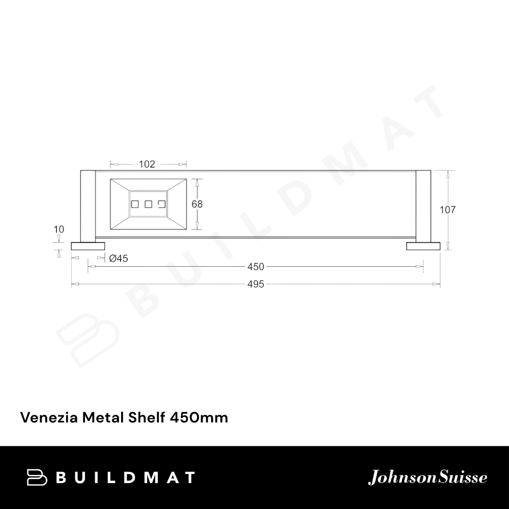 Product Features Wall mounted metal shelf 450x100mm shelf with self-draining soap recess Durable brass construction Simple, secure fixing Other matching Venezia design accessories available Read more