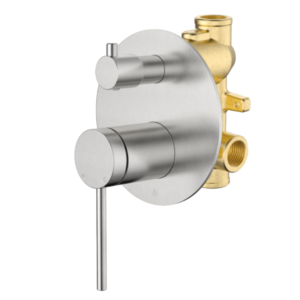 Johnson Suisse Venezia Shower Mixer With Diverter Complete Kit Brushed Nickel II