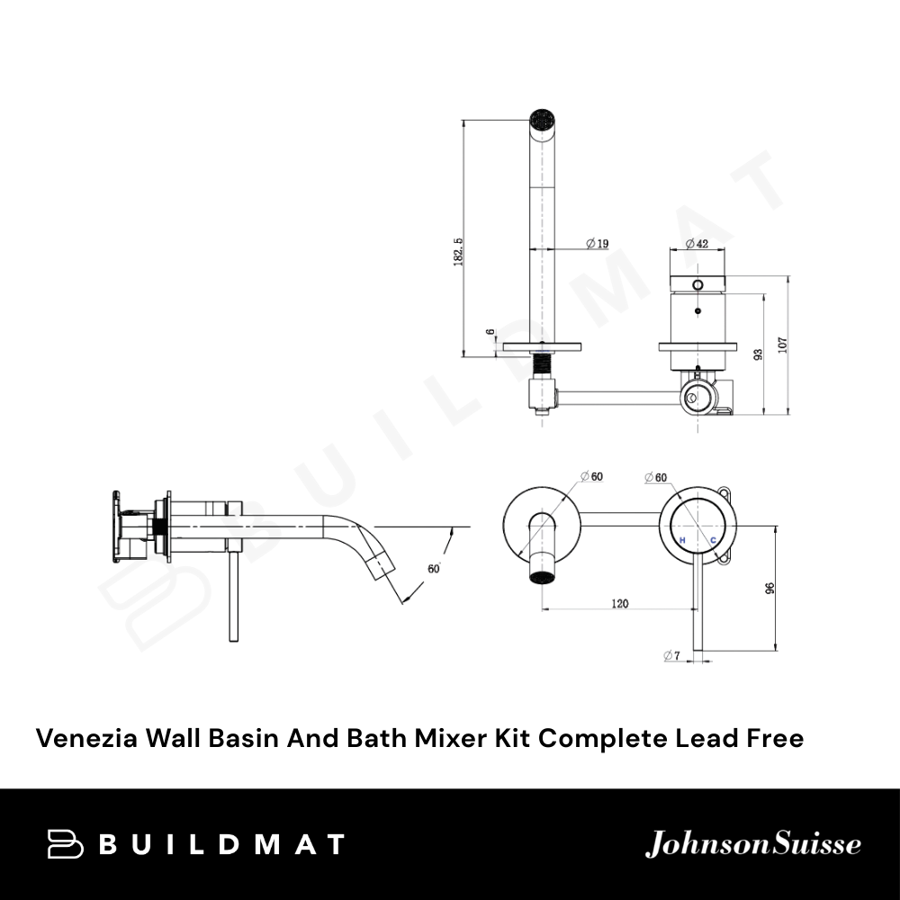 Johnson Suisse Venezia Wall Basin And Bath Mixer Kit Complete Brushed Nickel II Lead Free