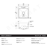 Kayla 450x500 Single Bowl Tap Landing Sink