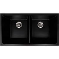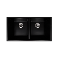 Keith 848x467 Black Granite Square Double Bowl Sink