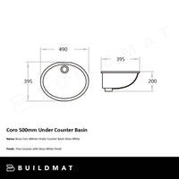 Under Counter Basin with overflow Size: 490 x 395 x 200mmWaste: 32mm overflow Material: Ceramic Basin Product Code: BMK407Finish Colour: Gloss White Note: plug and waste sold separately Read more