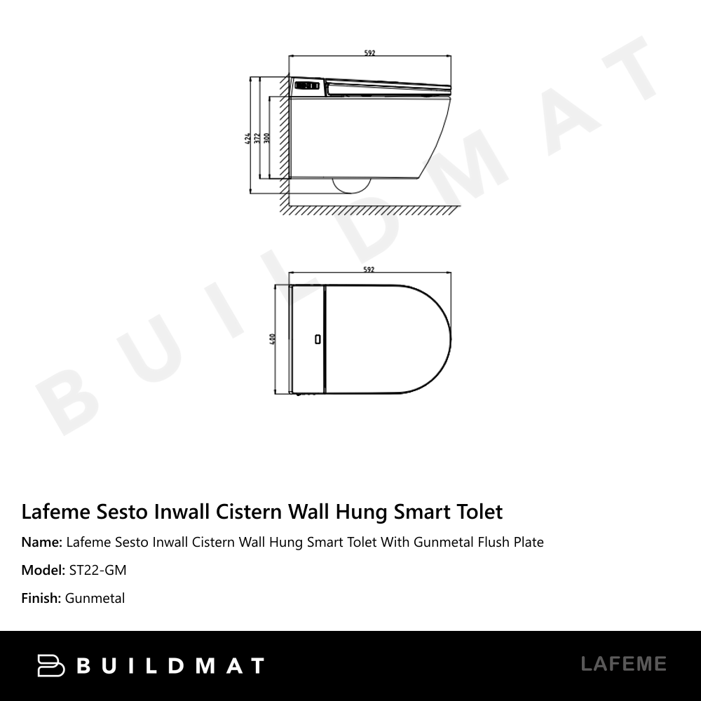 Lafeme Sesto Inwall Cistern Wall Hung Smart Toilet With Gunmetal Flush Plate