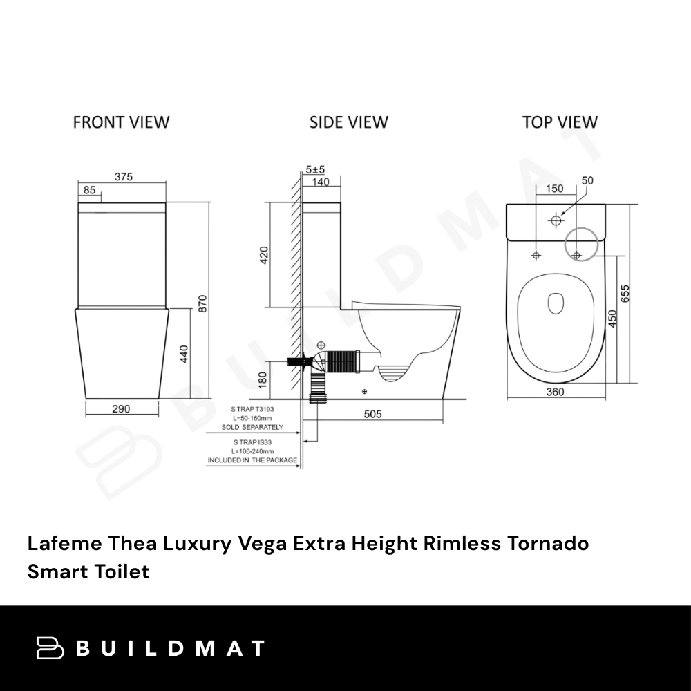 Lafeme Thea Luxury Vega Extra Height Rimless Tornado Smart Toilet White