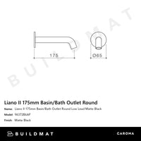 Caroma Liano II Basin/Bath Outlet 175mm Lead Free Matte Black