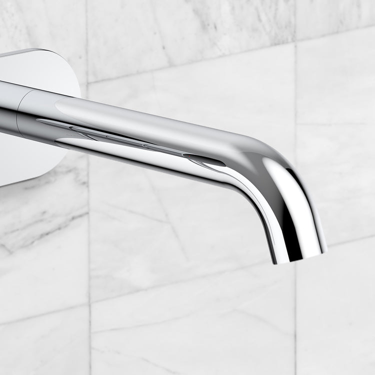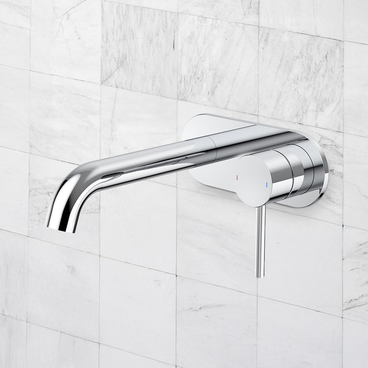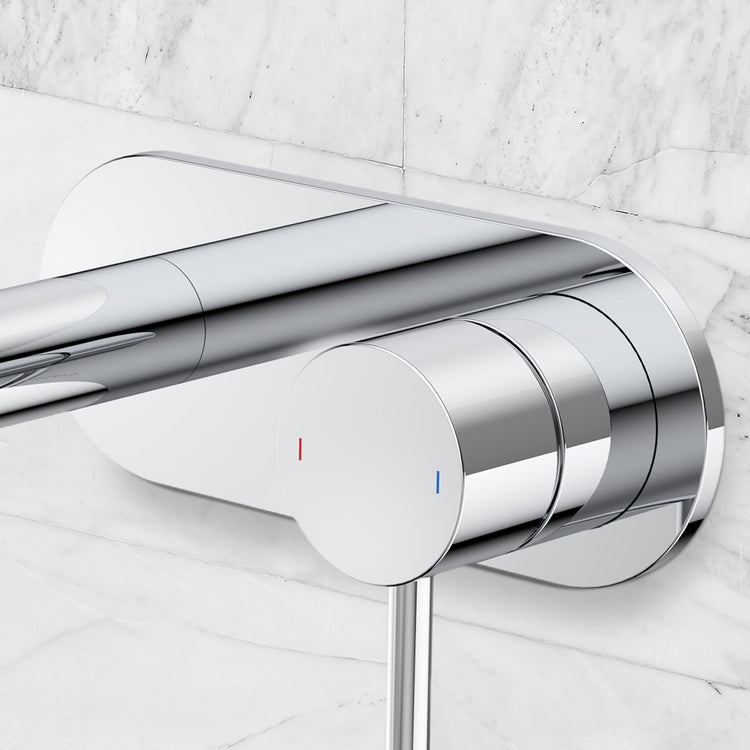 Caroma Liano II 175mm Wall Basin/Bath Mixer and Outlet Rounded Plate Lead Free Chrome