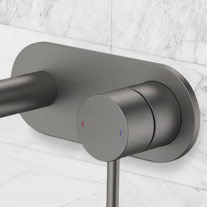 Caroma Liano II 175mm Wall Basin/Bath Mixer and Outlet Rounded Plate Gunmetal Lead Free