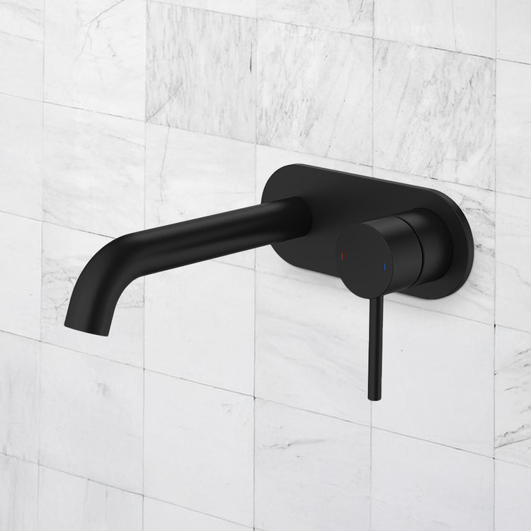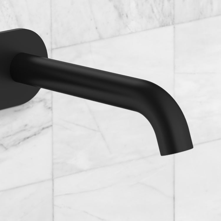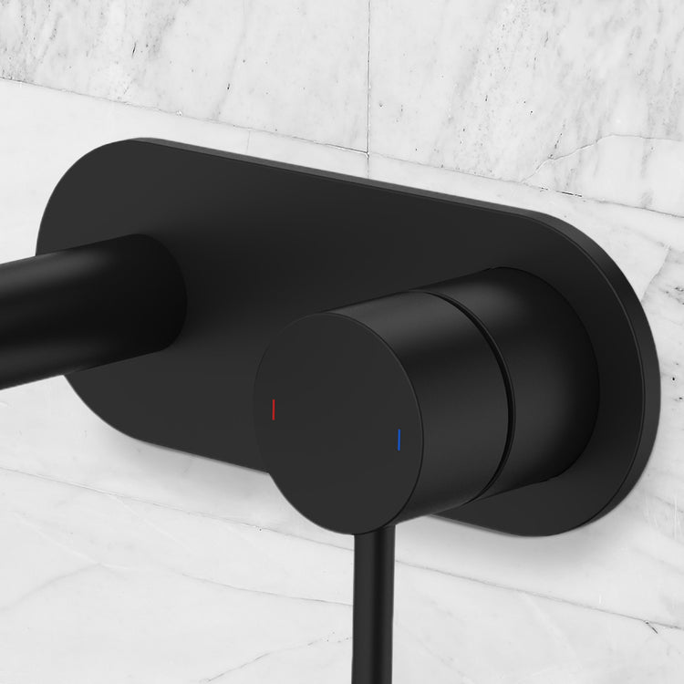 Caroma Liano II 175mm Wall Basin/Bath Mixer and Outlet Rounded Plate Lead Free Matte Black