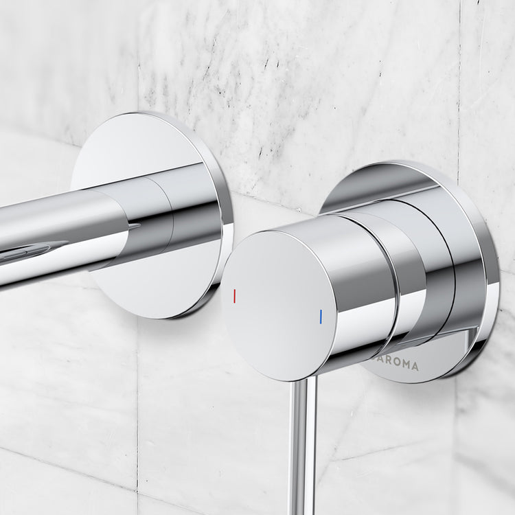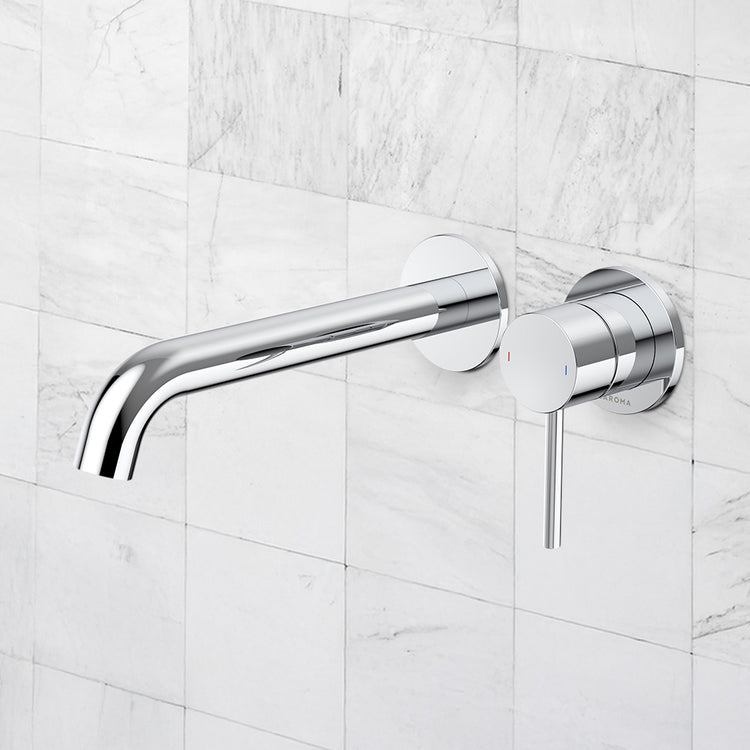 Caroma Liano II 210mm Wall Basin/Bath Mixer and Outlet Lead Free Chrome
