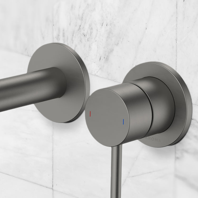Caroma Liano II 210mm Wall Basin/Bath Mixer and Outlet Lead Free Gunmetal