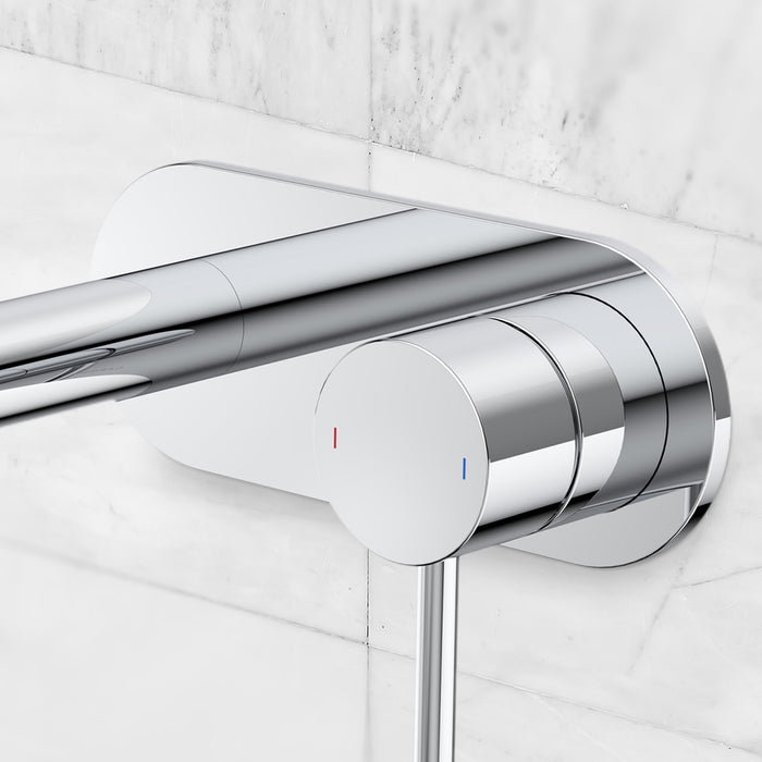 Caroma Liano II 210mm Wall Basin/Bath Mixer and Outlet Rounded Plate Chrome Lead Free
