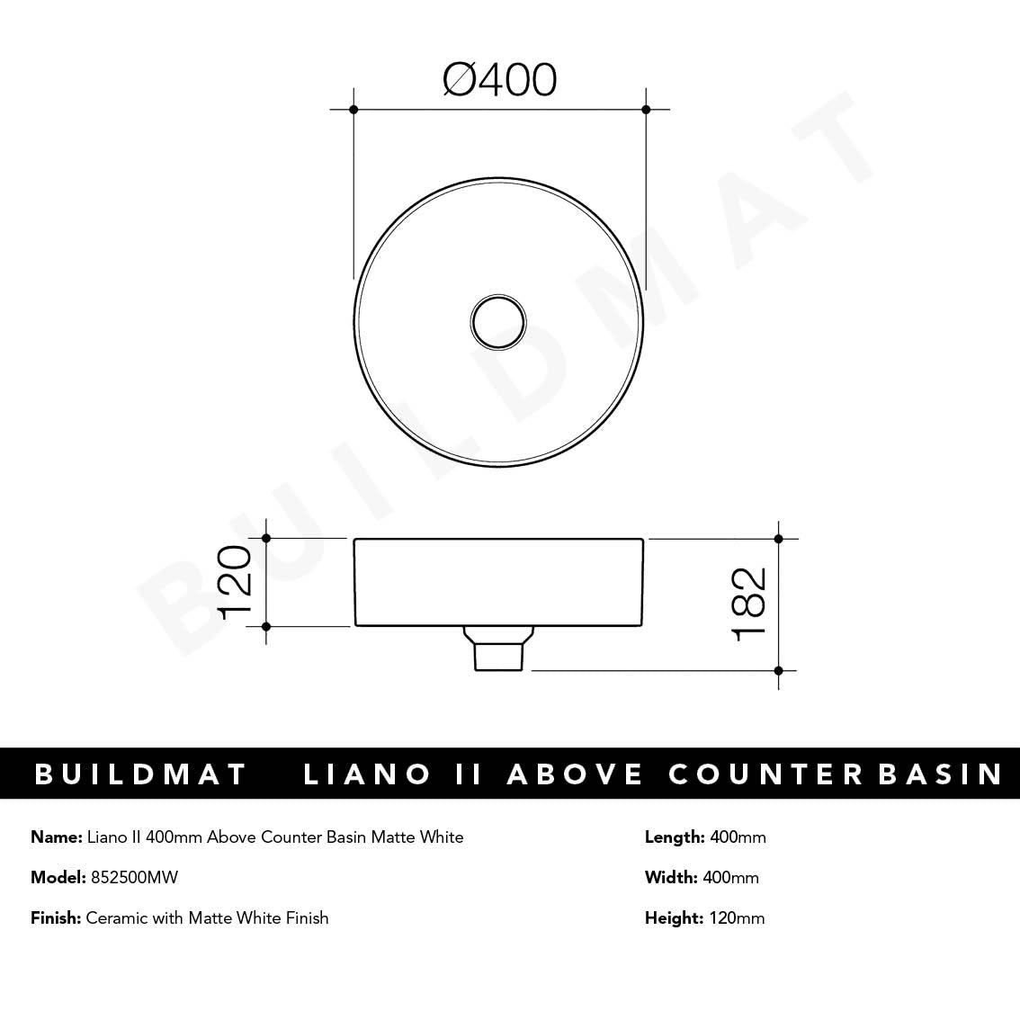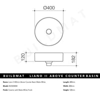Caroma Liano II 400mm Above Counter Basin Matte White