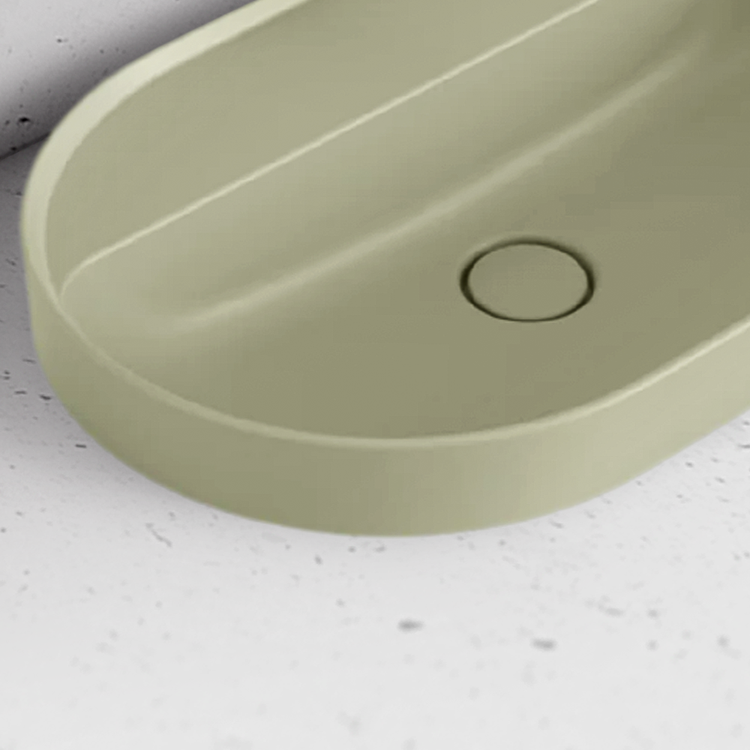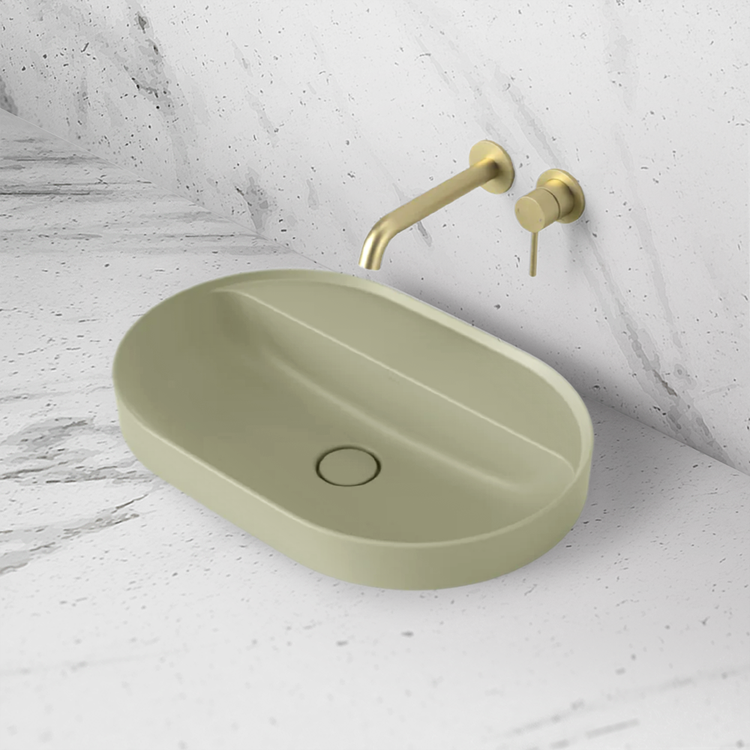 Caroma Liano II 600mm Pill Inset Basin with Tap Landing Matte Green