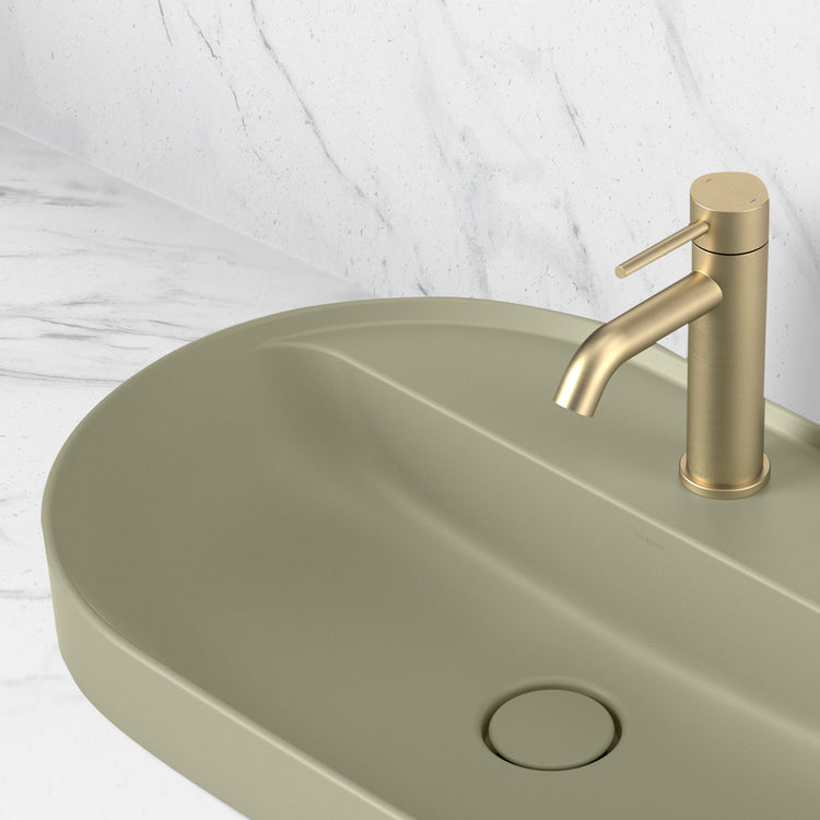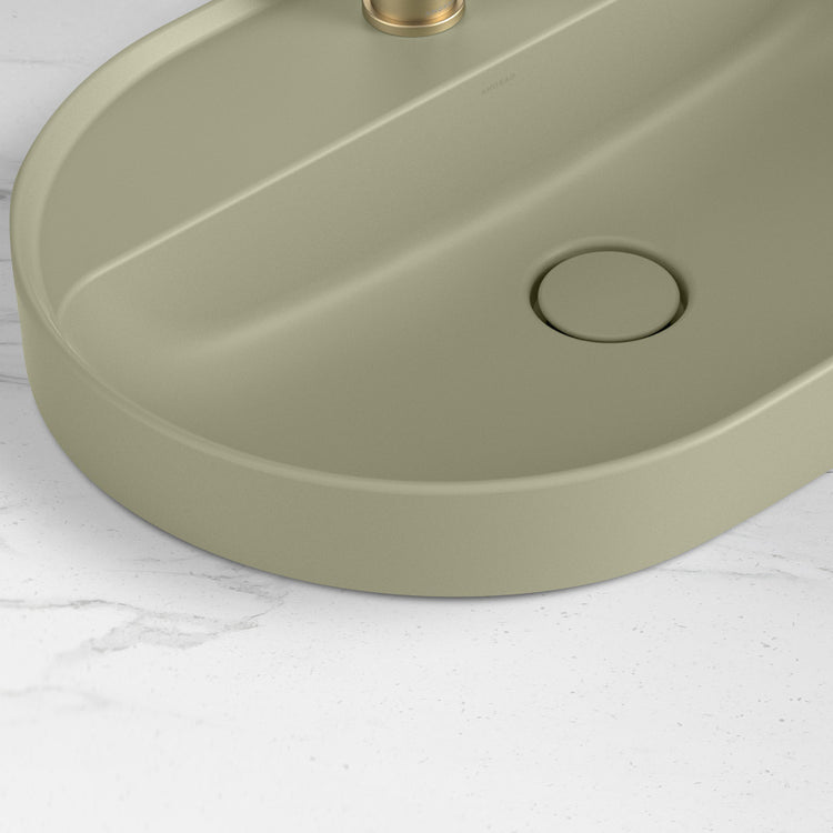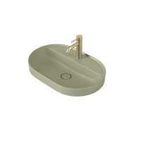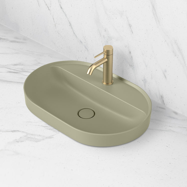 Caroma Liano II 600mm Pill Inset Basin with Tap Landing Matte Green with 1 Tap Hole