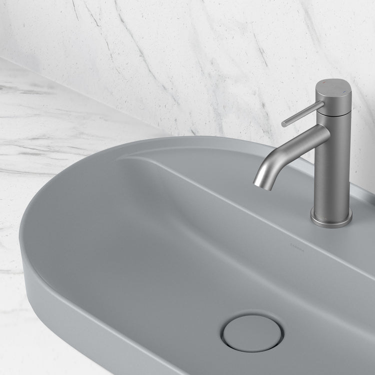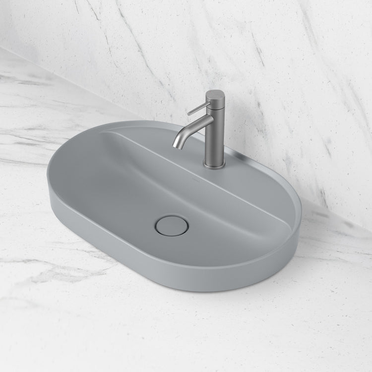 Caroma Liano II 600mm Pill Inset Basin with Tap Landing Matte Grey with 1 Tap Hole