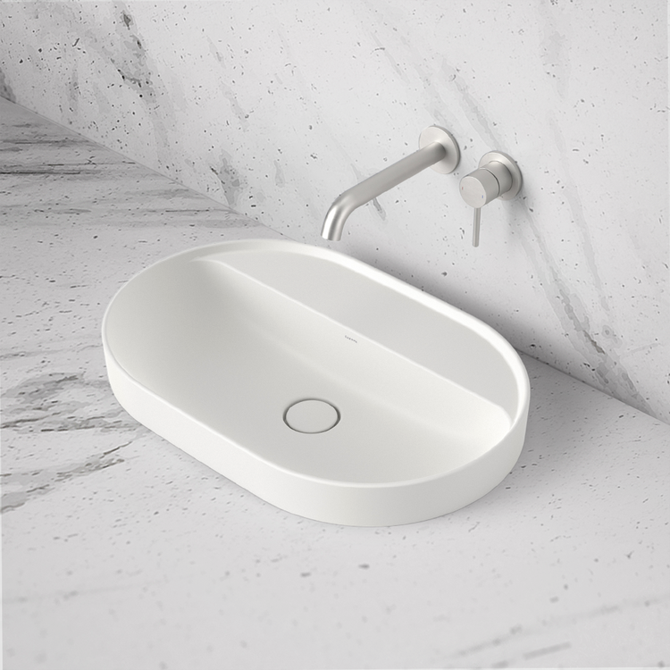 Caroma Liano II 600mm Pill Inset Basin with Tap Landing Matte White