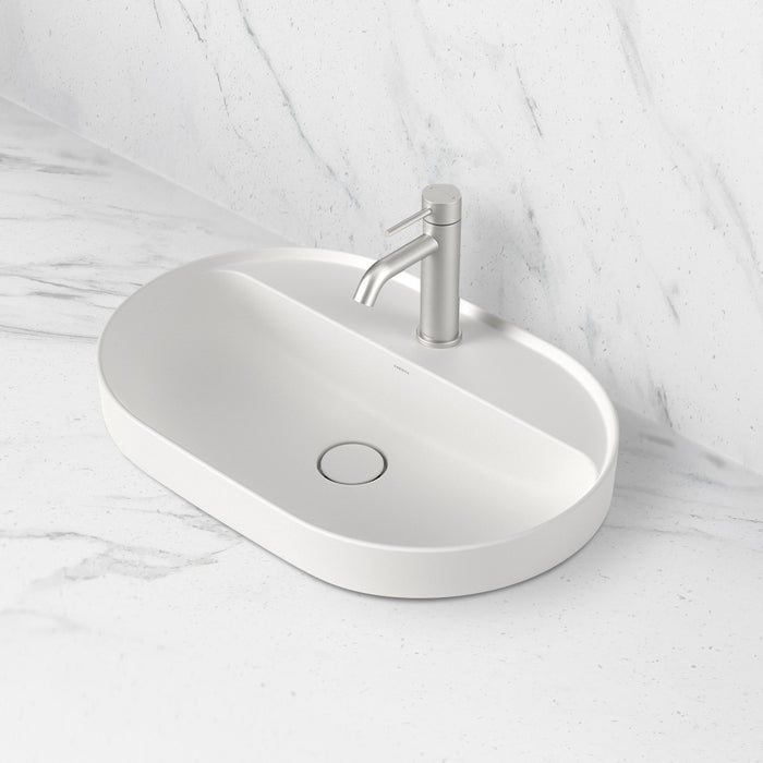 Caroma Liano II 600mm Pill Inset Basin with Tap Landing Matte White with 1 Tap Hole