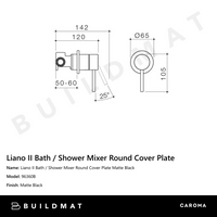 Caroma Liano II Bath Shower Mixer Round Cover Plate Matte Black
