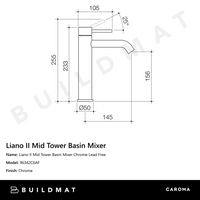 Caroma Liano II Mid Tower Basin Mixer Lead Free Chrome