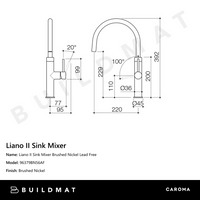 Caroma Liano II Sink Mixer Brushed Nickel Lead Free